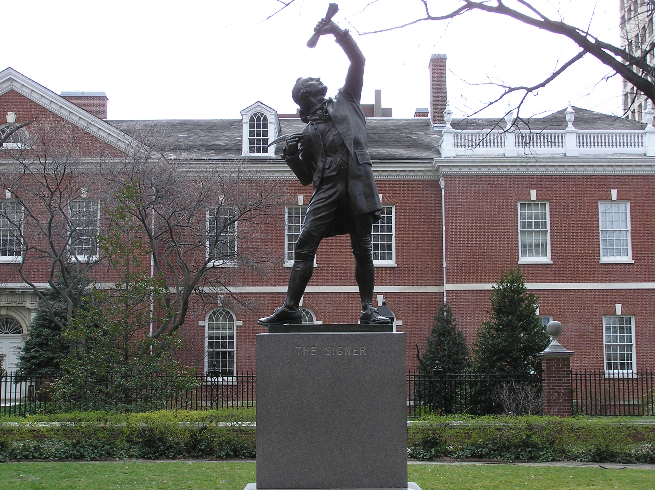 Take note of the statue called The Signer. Inspired by George Clymer, Philadelphia merchant, statesman and signer of both The Declaration of Independence and The Constitution of the United States, The Signer commemorates the spirit of all those who devoted their lives to the cause of American freedom.