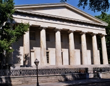 Completed in 1824, the Second Bank of the United States is one of the finest examples of Greek Revival architecture, modeled on the Parthenon in Greece. The Second Bank was designed by William Strickland who was known as the “city architect” because he created a large number of Philadelphia’s public buildings. The Second Bank was incorporated in 1816, and it was one of the most influential financial institutions in the world until 1832. Today, the building houses a collection of late 18th and early 19th Century portraits.