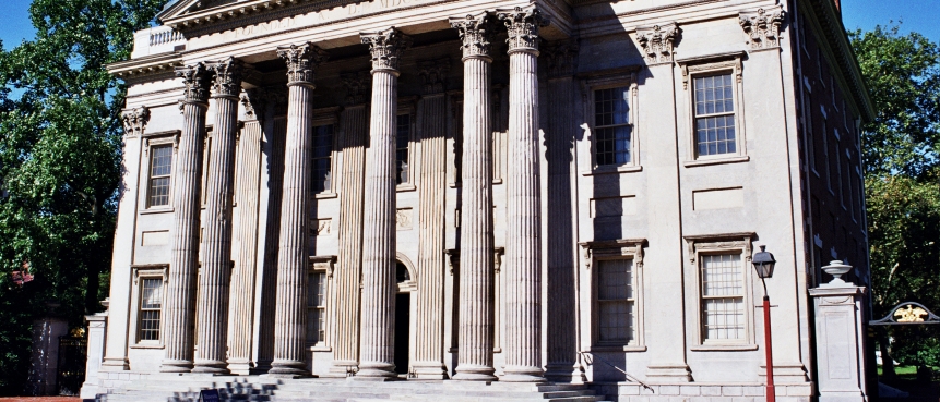 Constructed between 1787 and 1789 as the Philadelphia County Court House, Congress Hall served as the United States Capitol, the meeting place of the United States Congress, from 1790 to 1800, when Philadelphia was the Capital of the United States. The House of Representatives met on the main floor, while the Senate assembled upstairs. From its earliest days the Senate thus came to be referred to as the “upper chamber.” Among the historic events that took place here were the inaugurations of President George Washington (his second) and President John Adams.